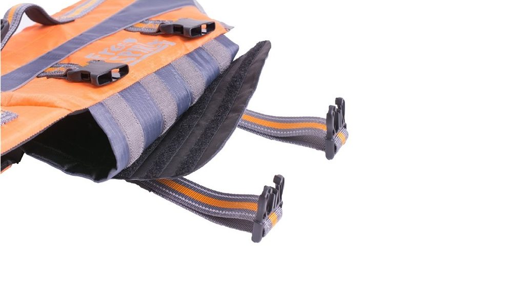 Na hřbetní straně se nachází madlo pro rychlé zachycení a kroužek pro připnutí vodítka, což oceníte například při zdvihání psa zpět na palubu nebo při pohybu v přístavu.