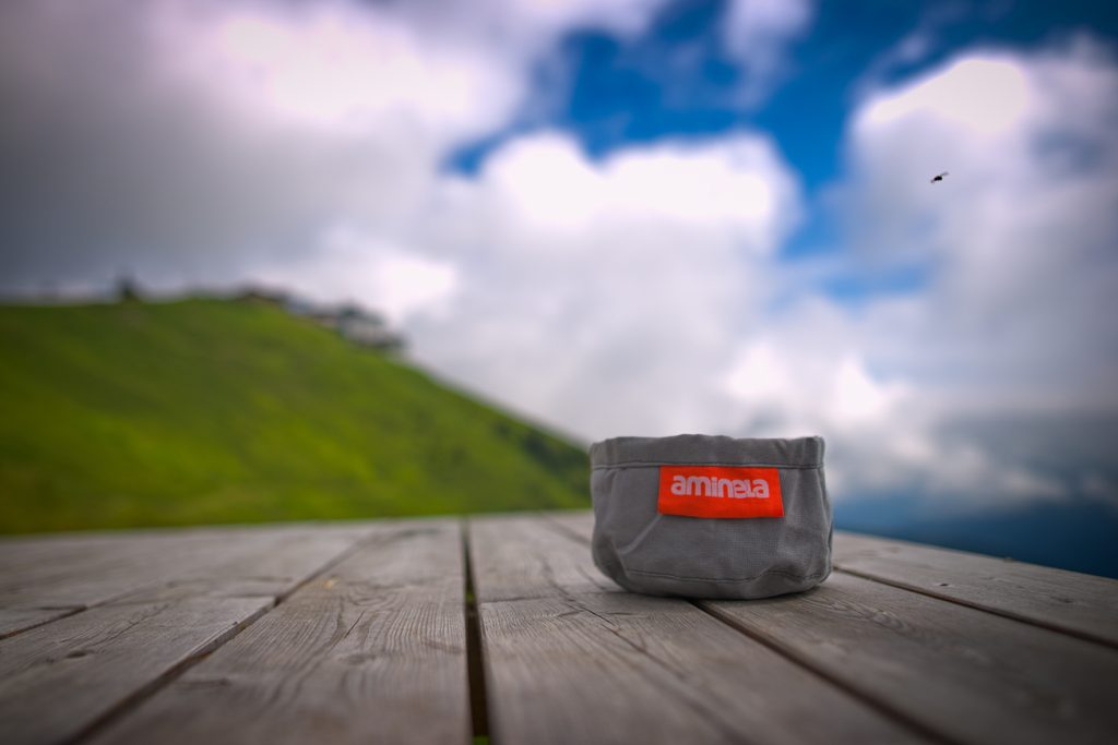 Cestovní miska Aminela je praktická miska na cestování nebo delší procházku se psem. Díky voděodolnému materiálu dlouho udrží vodu, vhodná i na granule. Cestovní miska je rychle schnoucí a snadno se složí např. do batohu.