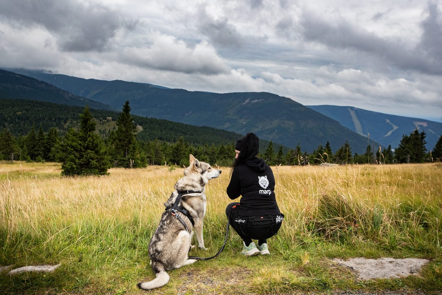 Statement s vlkem: Pro ty, kteří se nebojí vystoupit z davu. Působivý a odvážný design vlka, který zdobí přední stranu, se stane jasnou ukázkou přízně k Marp a psímu světu. Decentní logo marp a hory zdobí zadní část pod krčním lemem.