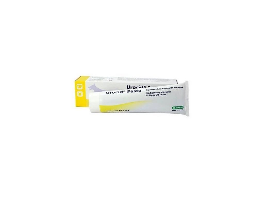 Urocid® pasta je chutný a zvířaty dobře přijímaný doplněk stravy s kombinovaným účinkem, určený k podpoře zdraví močových cest a prevenci struvitových močových kamenů.