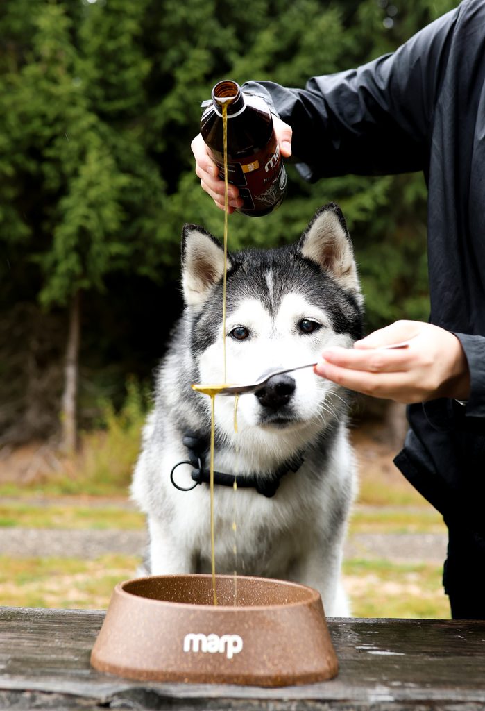 Špičkové oleje z řady Marp Holistic můžete přidávat ke granulím, konzervám, doma připravené nebo syrové stravě.