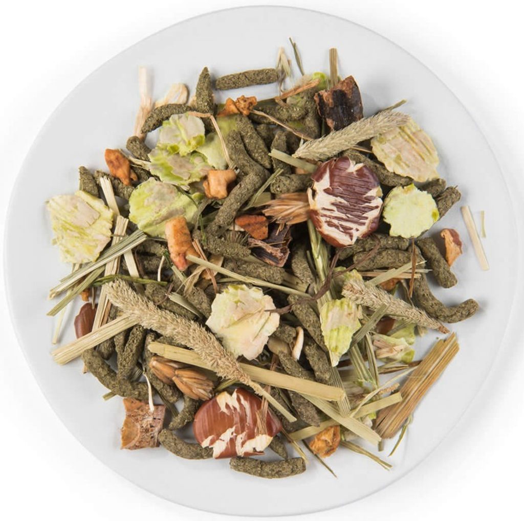 Bohatá směs s chutnými a různorodými přírodními surovinami pro vynikající apetit. Obsahuje 24 chutných surovin, včetně bojínku lučního, hrášku, fazolí, petržele a kousků sušených jablek.