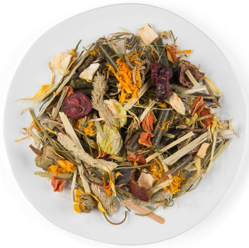 Bohatá směs s chutnými a různorodými přírodními surovinami pro vynikající apetit. Obsahuje 25 chutných surovin, včetně bojínku lučního, brusinek, pastináku, eukalyptu a květů měsíčku lékařského.