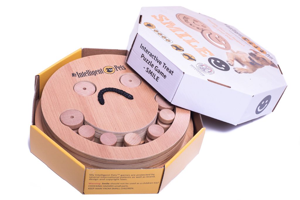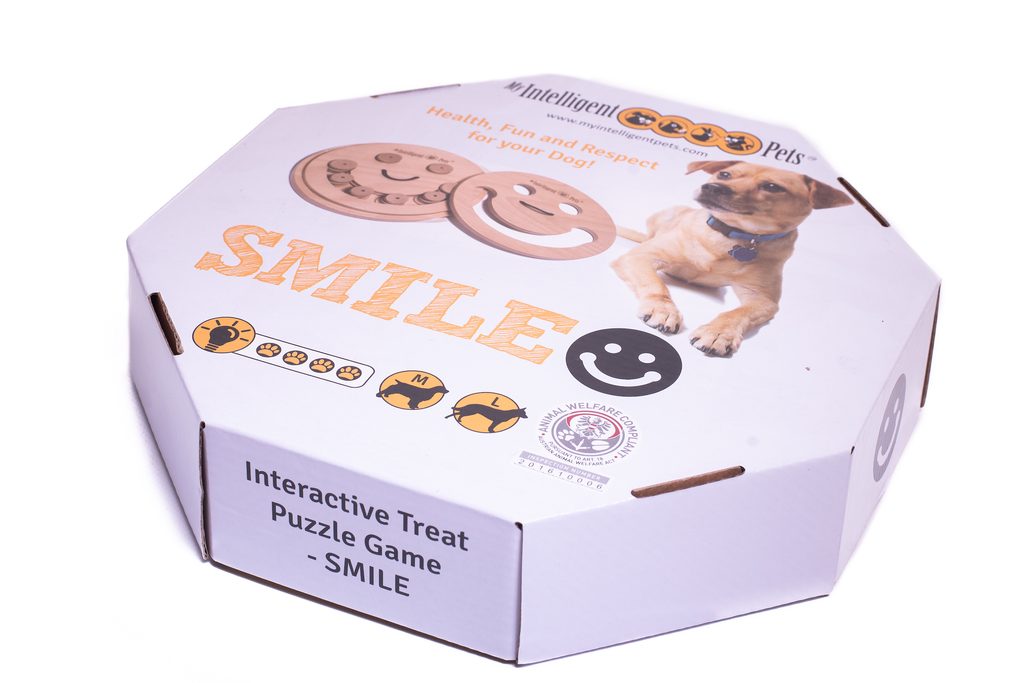 Smile je náročná inteligentní hra pro střední a velké psy, kterou vyvinula společnost My Intelligent Dogs®. Hru lze navrhnout od snadné (úroveň obtížnosti jedna tlapka) až po obtížnou (tři tlapky). Skládá se ze čtyř dřevěných disků s výřezy, kterými lze pohybovat herními figurkami (4 válečky a 5 kloboučků). Při sestavování hry můžete pod herní dílky schovat pamlsky. To psa motivuje k činnosti, aby dosáhl odměny. Horní a prostřední disk "Úsměv" mají uprostřed připevněný provázek, aby je pes mohl zvednout čumákem.