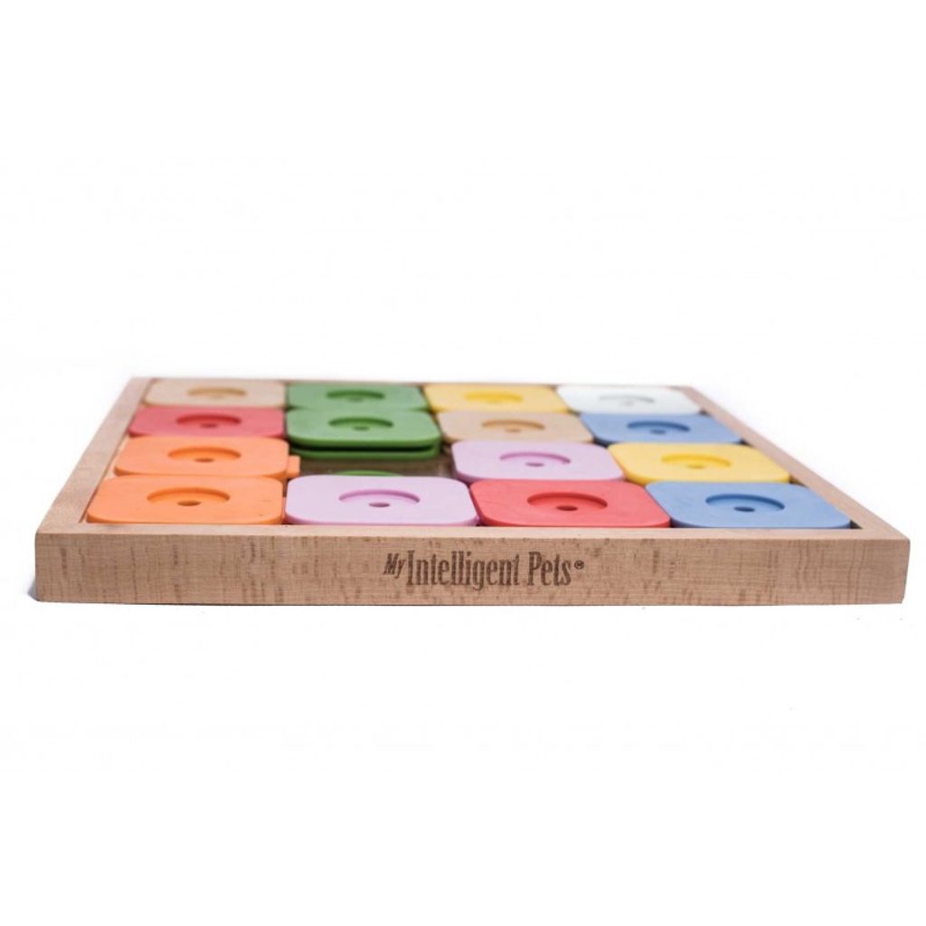 Naše řada interaktivních her "Dog' SUDOKU®" představuje inovativní přístup k myšlence produktů pro obohacení chovu domácích mazlíčků vyvinutých a patentovaných společností My Intelligent Pets®. Hra se dodává v různých velikostech vhodných pro vašeho psa (malá, střední a velká) a ve třech úrovních obtížnosti (základní - 4 pole, pokročilá - 6 polí, expert - 9 polí a džin - 16 polí).