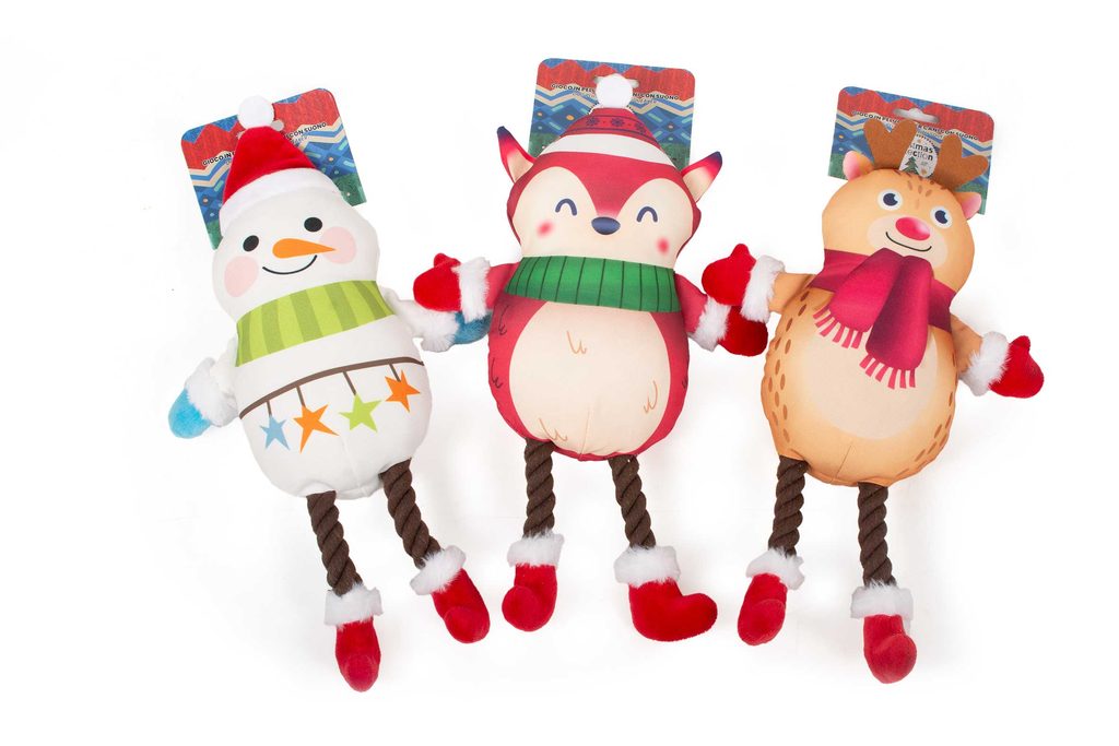 Dopřejte svému psovi radost z Vánoc s těmito vánočními plyšovými hračkami s lanovými nožičkami.
