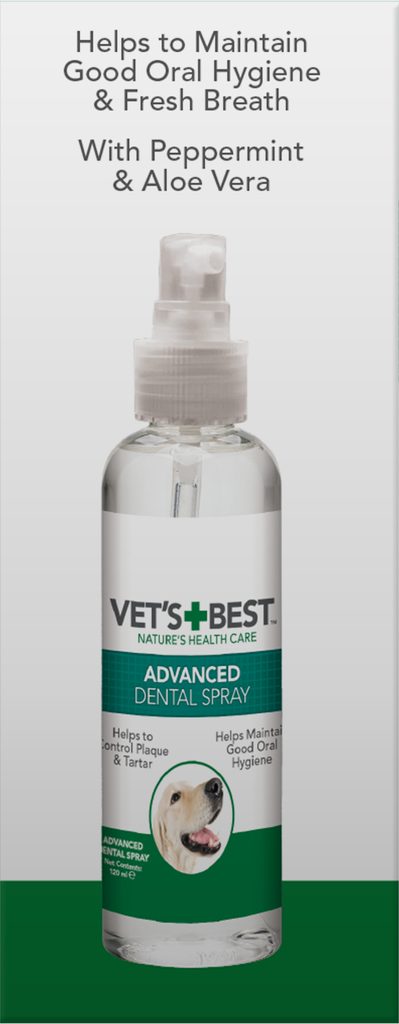 Vet’s Best dentální sprej spolu s lanovým uzlem účinně pomáhají eliminovat bakterie v dutině ústní a přispívají k prevenci tvorby zubního plaku a zubního kamene.