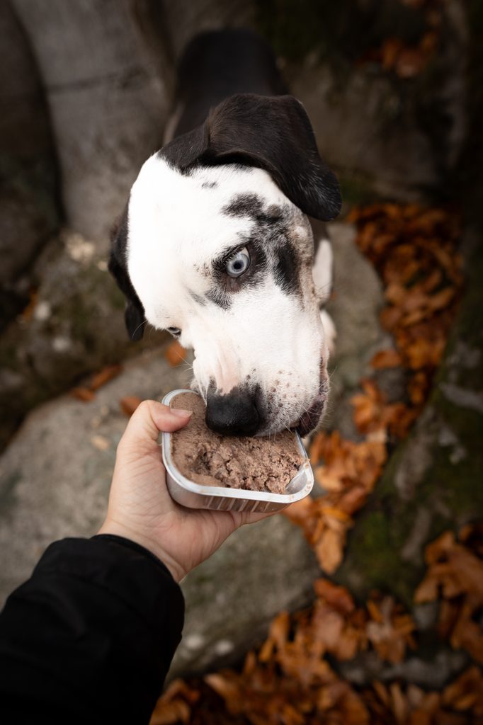 Hmotnost krmné dávky uvedená na obalu krmiva je orientační. Individuálně závisí na plemeni, věku, aktivitě, temperamentu, zátěži, genetických faktorech. Pes musí mít dostatek pitné vody. Skladujte v suchu a chladu. Po otevření zakryjte a uchovávejte v lednici, spotřebujte během 2 dnů.