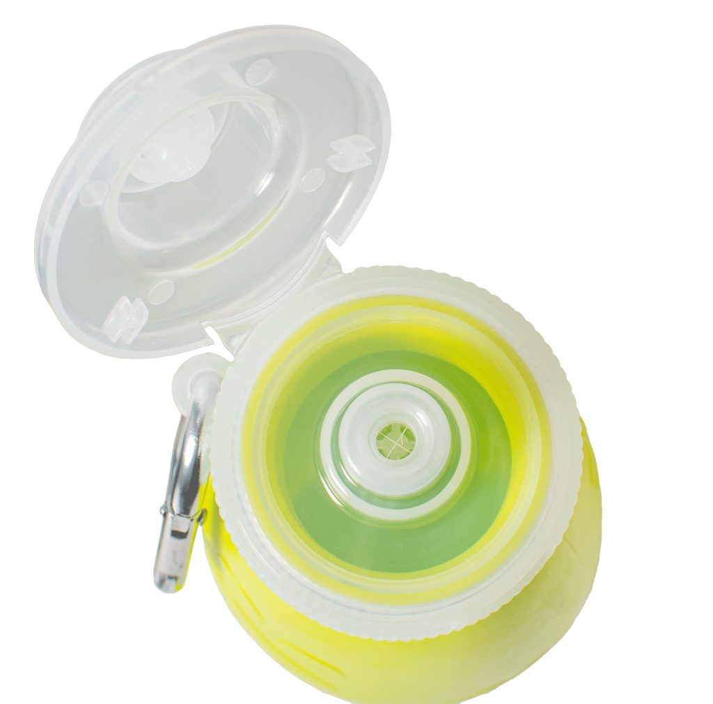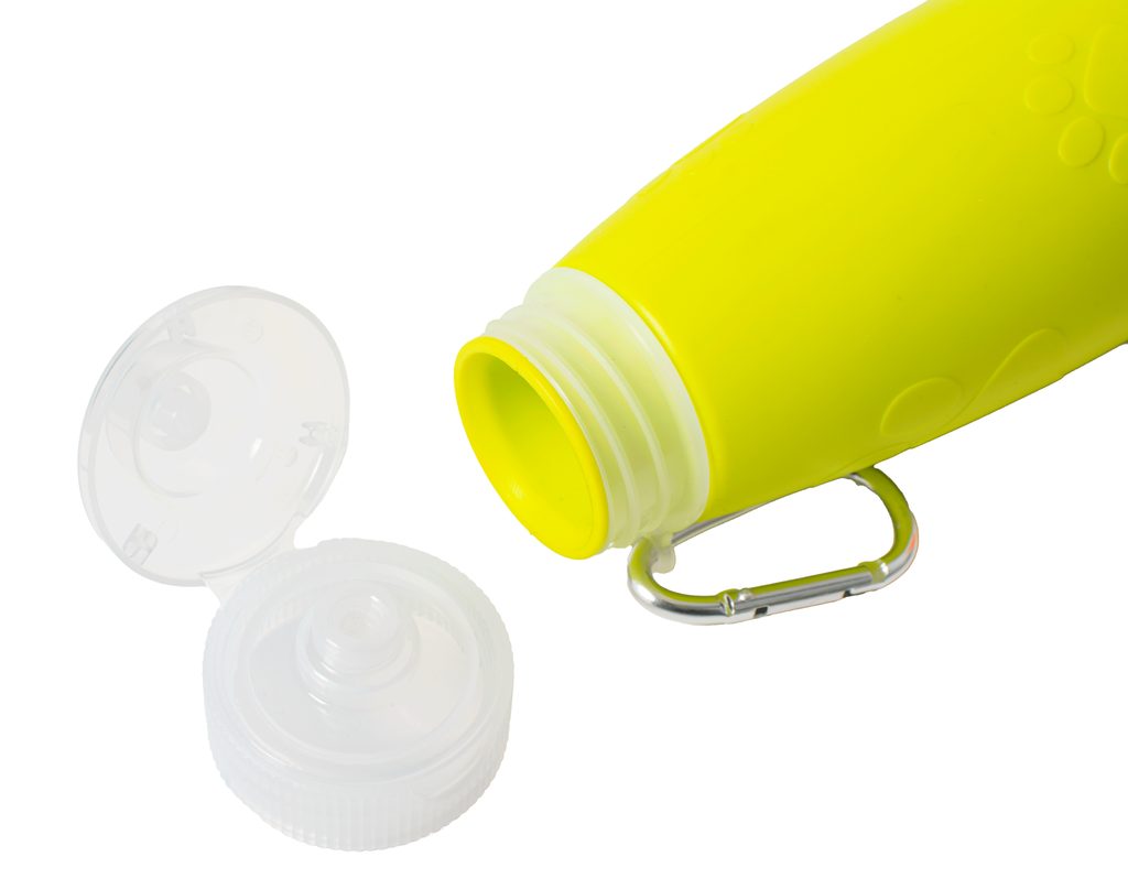 Je vyrobená z bezpečného silikonu bez BPA, vhodná do myčky nádobí a opatřená praktickou karabinou, kterou snadno připnete na batoh, vodítko nebo tašku.