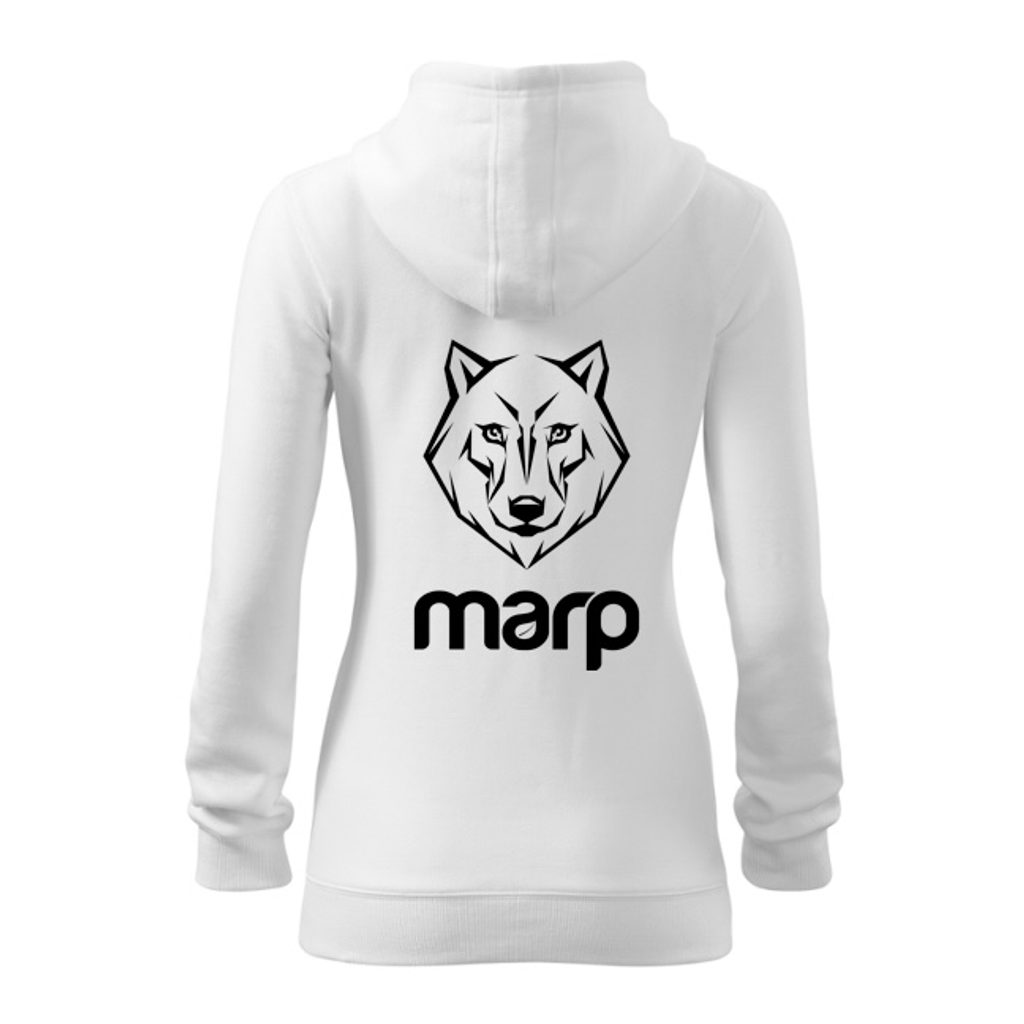 Marp dámská mikina ve stylu klokanky s výrazným potiskem na zadní straně, kapucí a zipem