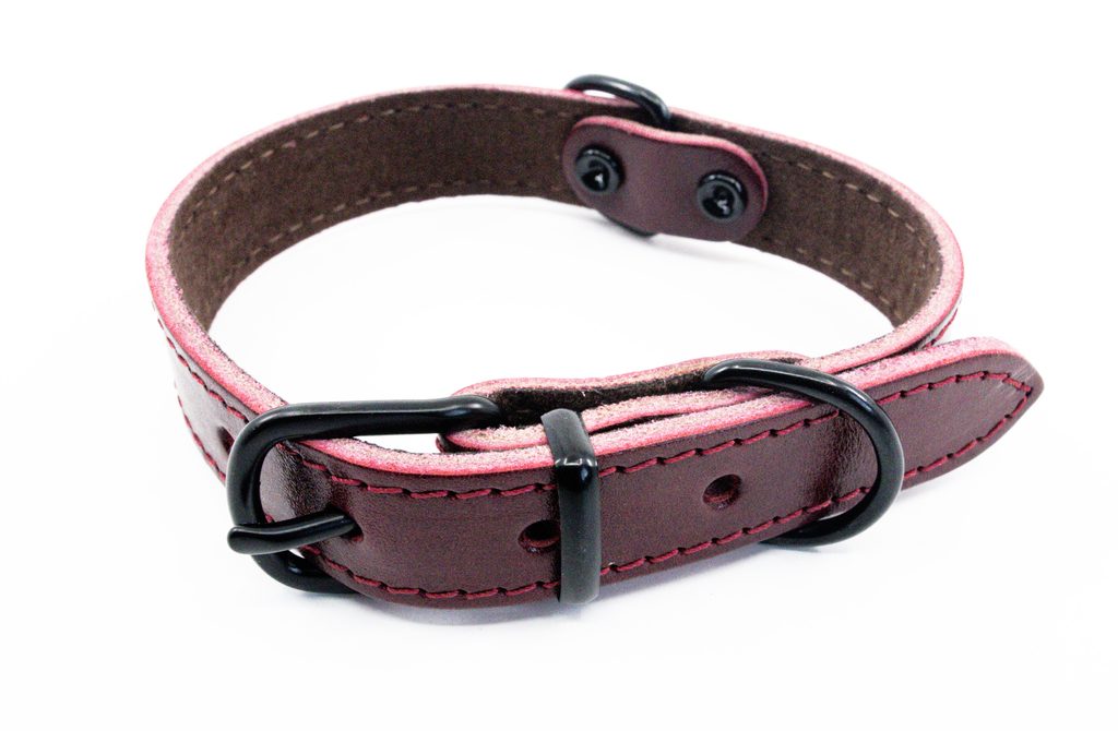Kožený obojek ARGUS, černé kování - Bordó