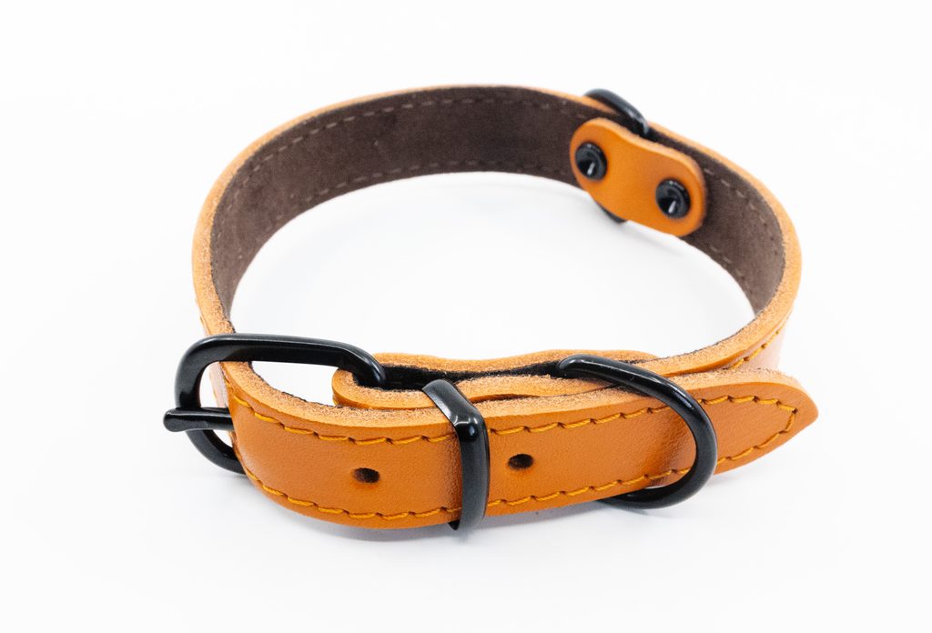 BAFPET Kožený obojek HERRY MINI, černé kování - Oranžová