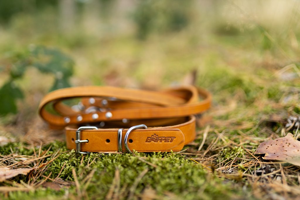 Obojek z měkké maštěné hovězí kůže pro malá, střední a velká plemena