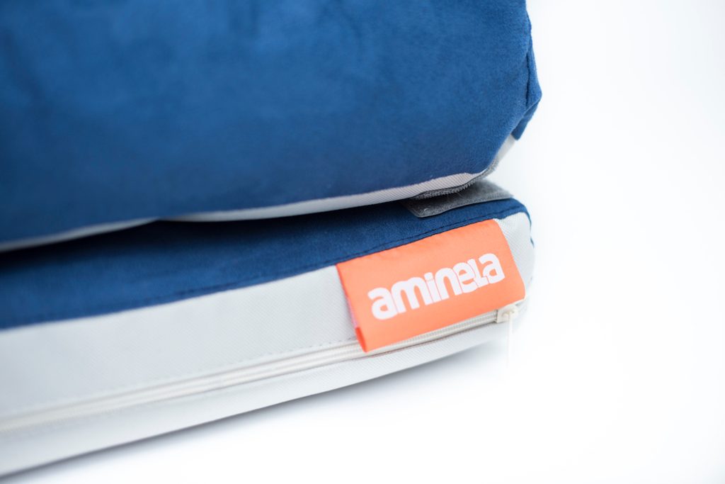 Matrace Aminela se skládá z dvou odolných materiálů, z voděnepropustného materiálu a měkkého, hebkého, avšak pevného a voděodpudivého materiálu, který nešustí a pro psa je velmi pohodlný. Ze stejně hebkého a pohodlného materiálu je vyroben okraj, který se na matraci přichytí pomocí suchých zipů. Kdykoliv se dá okraj odlepit a zase nalepit.