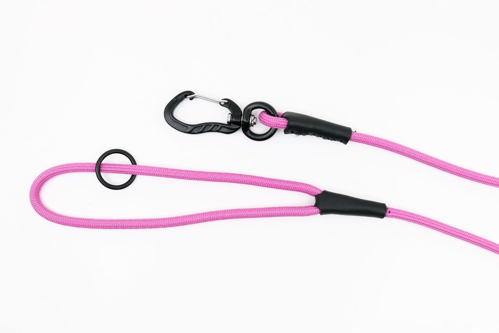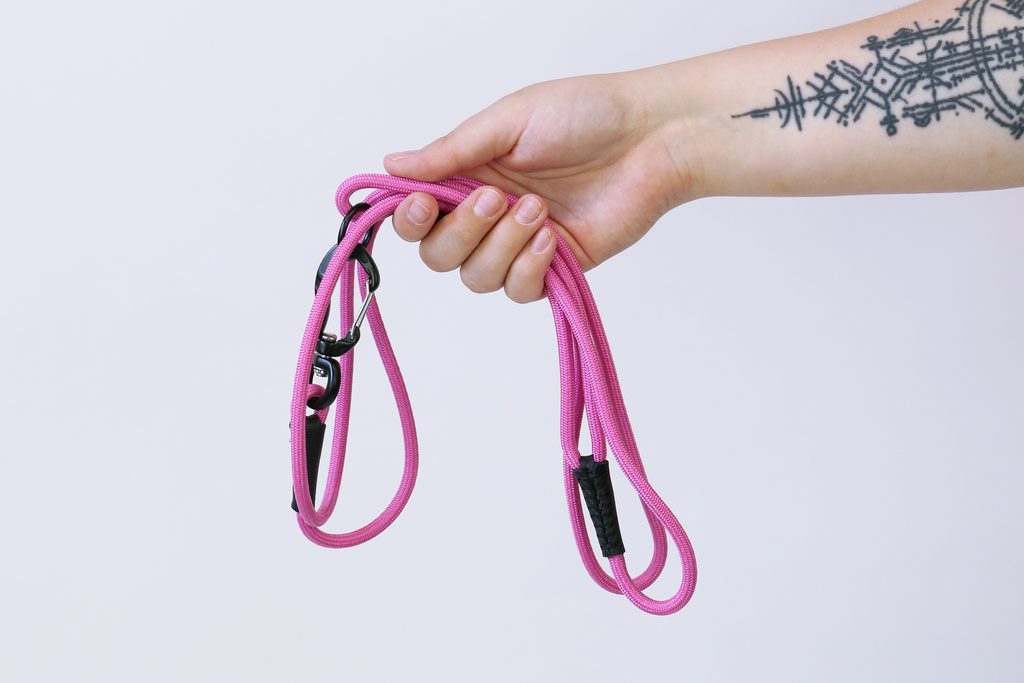 Ručně vyrobené vodítko z horolezeckého lana a pravé kůže s černým kováním