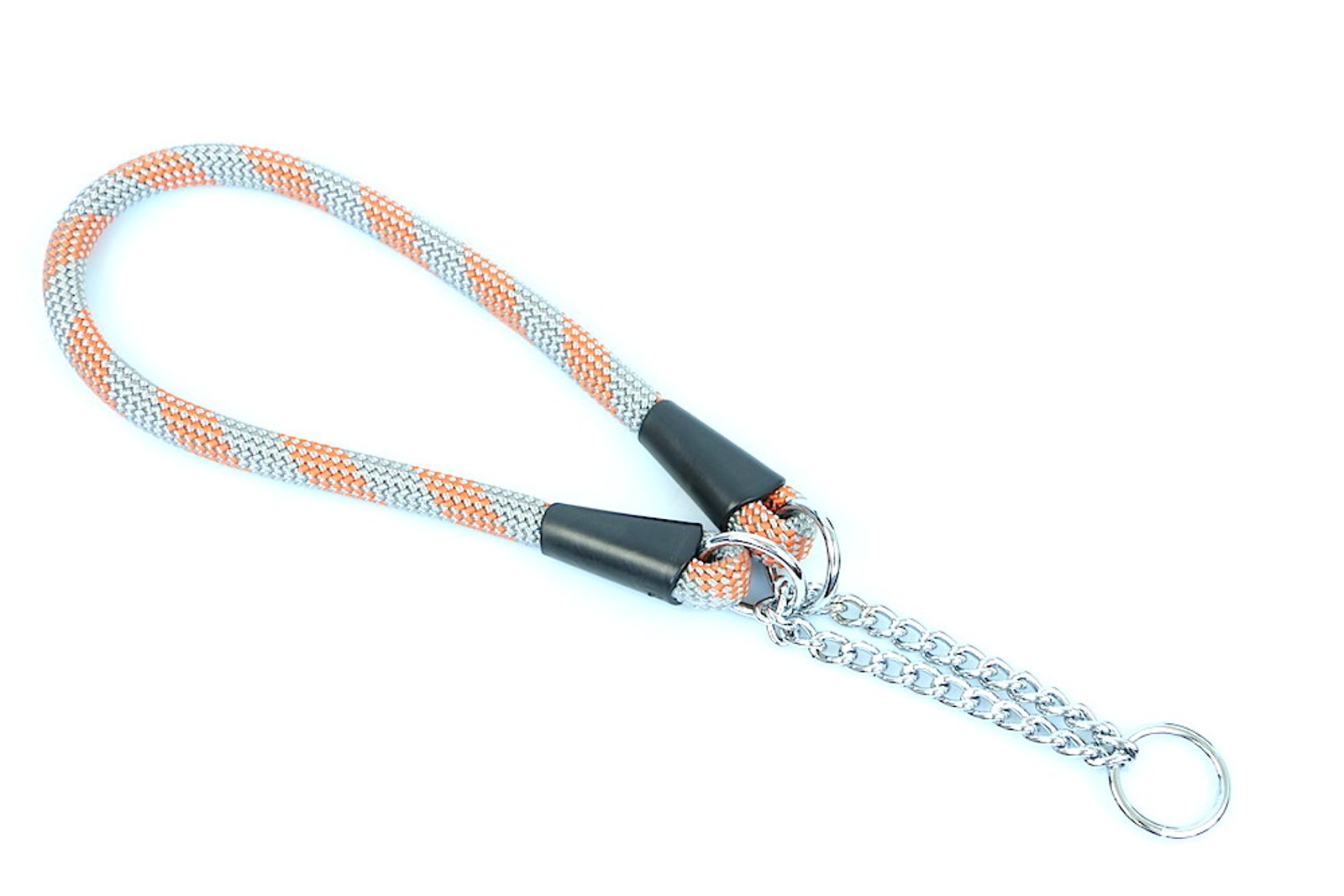 Ručně pletený polostahovací obojek z pevného odolného lana s kombinací lehkého pevného řetízku, pomocí kterého se obojek v případě potřeby stáhne. Vhodný pro táhnoucí psy na vodítku.